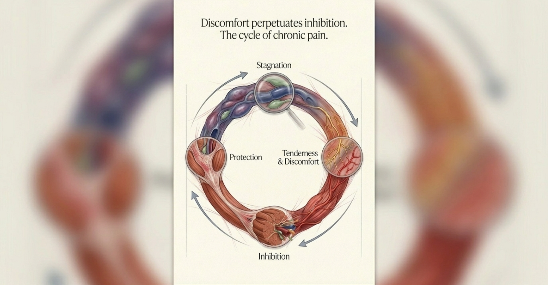 A region that should feel open and adaptable starts to feel dense. Muscles that should coordinate well begin to feel overactive at rest and underperforming when asked to work. Fascia becomes less forgiving. Blood flow can slow down. Venous return can become less efficient. Lymphatic movement can become sluggish. Local irritation can increase. Tenderness rises. Stagnation begins to build. Then that stagnation feeds even more guarding.